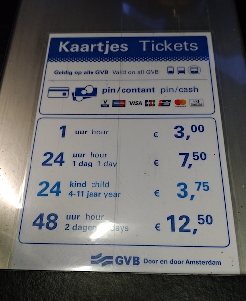 第一種是直接上車跟票務人員購買,以阿姆斯特丹為例分成 1小時券、24小時券、48小時券 三種(刷卡和付現都可)。